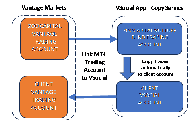 • We trade in our account in Vantage. VSocial will copy the trades to your account in Vantage.